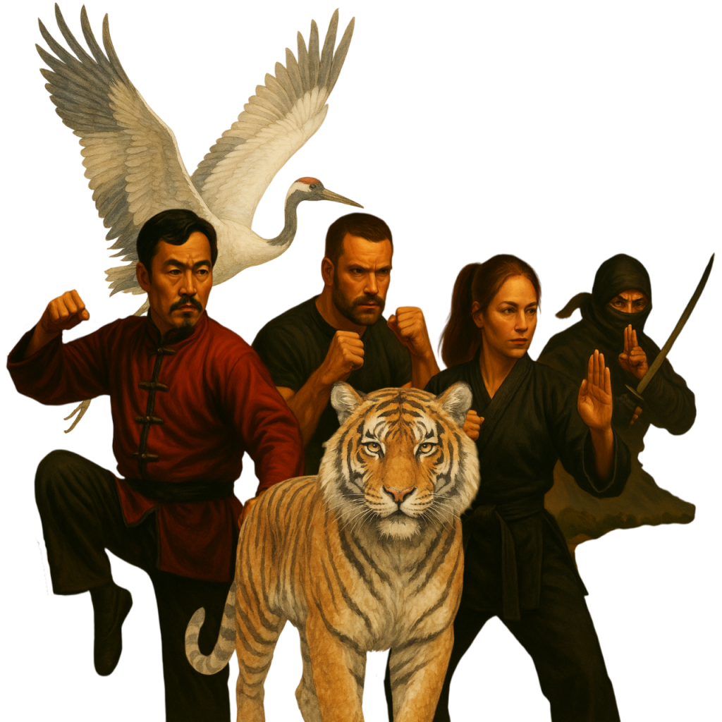 Shaolin Kenpō, Kenpō Karate, Ninjutsu, Tiger & Kranich Kung Fu – klassische Stile mit klaren Bewegungen, Tradition und Tiefgang.