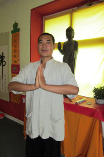 „Ich bin der Neffe des derzeitigen Abtes und habe 12 Jahre dort gelebt und die Kunst der Shaolin erworben. Mein dort erlangtes Wissen der 5000 Jahre alten – zunächst geheimgehaltenen – Wissenschaft und Geisteskultur der Entspannung und Kampfkunst möchte ich hier in Kursen und Seminaren an Interessierte weitergeben.“