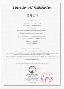 Zertifikat Shaolin Qi Gong Lehrer Shi Heng Fú