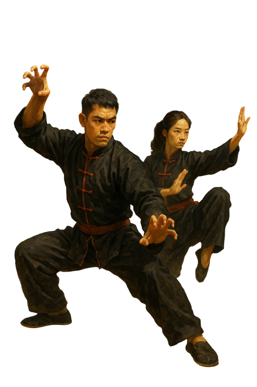 Tiger & Kranich Kung Fu verbindet erdige Direktheit (Tiger) mit Balance und Weite (Kranich). Das System schult stabile Stände, präzise Winkelarbeit, saubere Schlag-/Trittprinzipien und eine ruhige, klare Entscheidungsführung. Ergebnis: kontrollierte Dynamik statt roher Härte – für Training, Alltag und Selbstschutz.