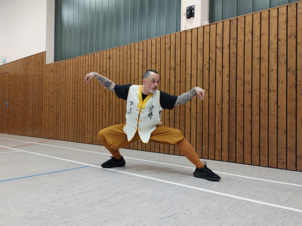 Jede Einheit beginnt mit Shaolin Baduan Jin (少林八段锦 – Shàolín Bāduànjǐn). Diese vorbereitende Form aus dem Bereich des Qi Gong (气功 – Qìgōng) dient nicht nur dem Aufwärmen, sondern der bewussten Einstimmung auf das Training. Gelenke, Sehnen, Atmung und Haltung werden vorbereitet, gleichzeitig wird der Geist gesammelt. So entsteht von Anfang an ein anderer Trainingszustand: wacher, ruhiger und klarer.